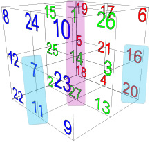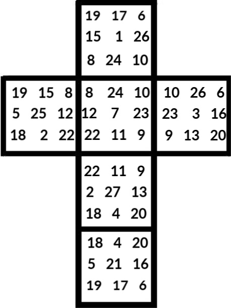 There are “theoretically” 27 small Cubes in a Rubik’s Cube. But we only see 26 of those little Cubentre Cubes. we do not see the “Centre Cube”. (In the Rubik’s Cube Puzzle”, there is a rotating “joint” in the Puzzle, i.e. where the “imaginary central cube” would have been.